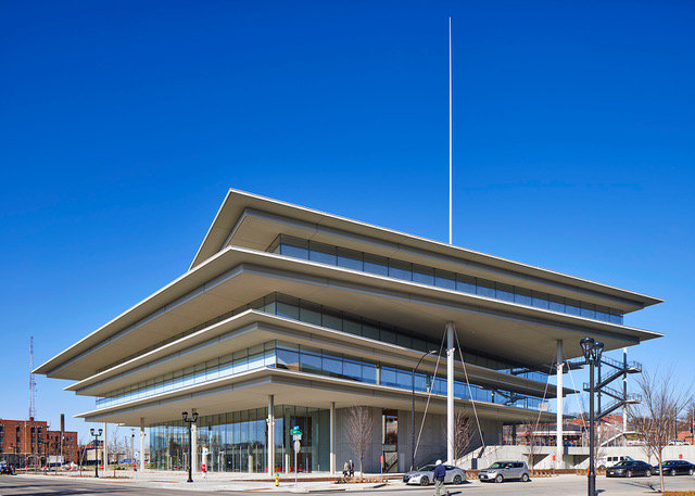 Fabrication of a flexible one piece 32 meter long glass prepeg mast which flexes according to the force of the wind. The spire was made for a project by Renzo Piano for the Krause Gateway Center located in downtown Des Moines.